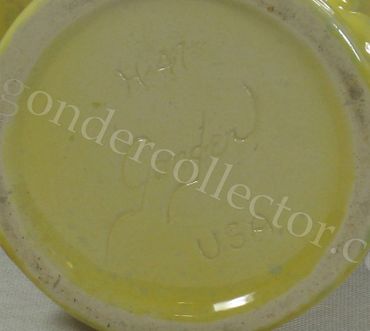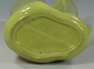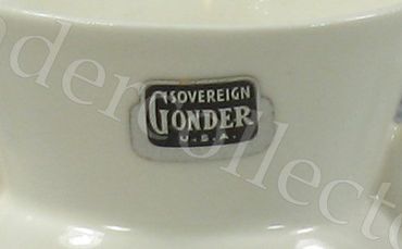 Gonder items are marked on the bottom. Items were generally marked Gonder, Gonder Original, or Gonder Ceramic Arts. Marks may be incised or embossed; block style print or a fanciful script. Marks generally include U.S.A if room permitted. Most pieces are also marked with the mold letter and/or number.