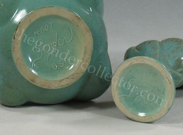 Collectors and dealers will often attribute unmarked pieces with drip or crackle glazes to Gonder, even though there were many potteries using similar glazes on their wares. A quick search of Gonder on eBay will nearly always produce at least one unmarked drip or crackle glaze piece being attributed to Gonder.